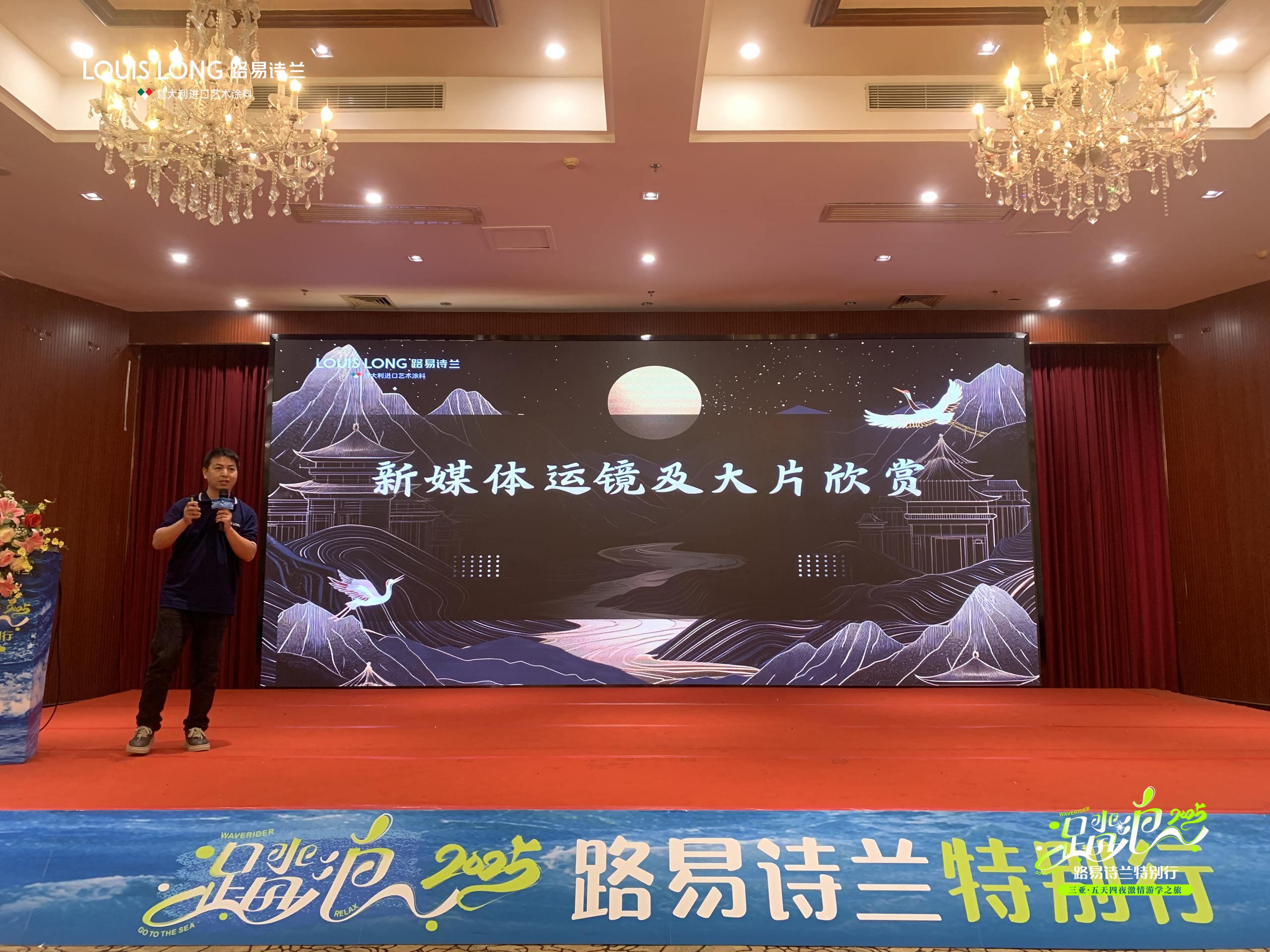 大会在万众瞩目中拉开帷幕,王业总监与区域经理张泳携手登台,共同担纲本次“踏浪2025 路易诗兰特别行”大会的主持人。