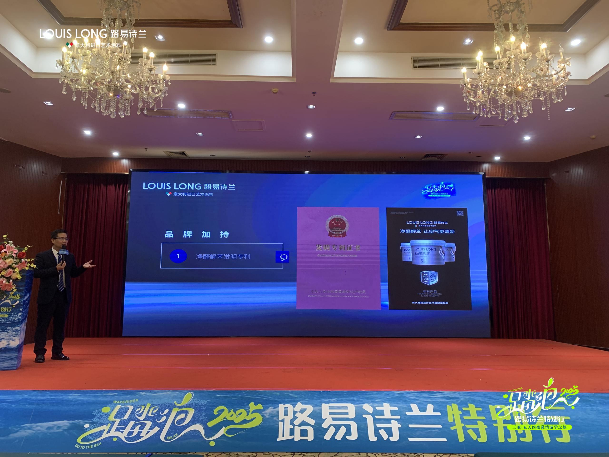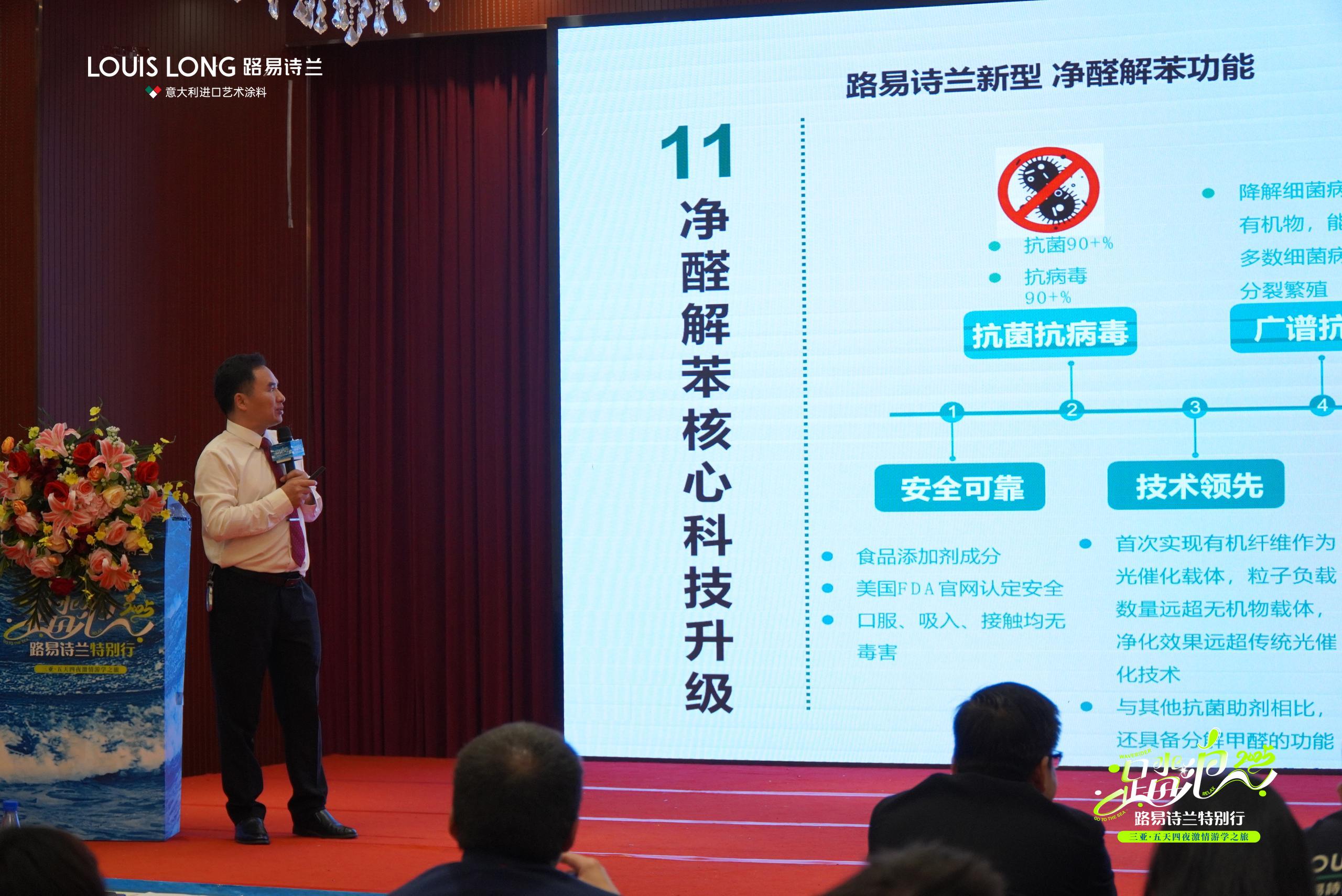 在“踏浪2025 路易诗兰特别行”活动中,路易诗兰总经理孙总向大家介绍路易诗兰在环保技术上的又一重大突破——净醛净苯技术的全新升级。