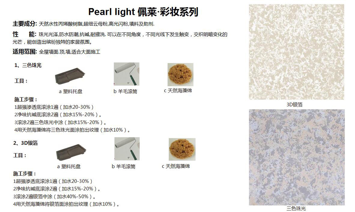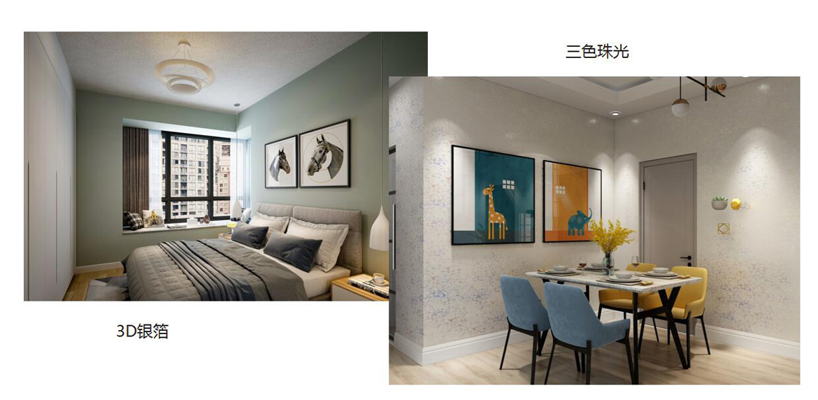 珠光光泽,防水防潮,抗碱,耐擦洗.丰富的色彩组合在不同角度,不同光线下发生触变,交织闪烁着明暗变化的光芒,创造出缤纷独特的家居氛围。