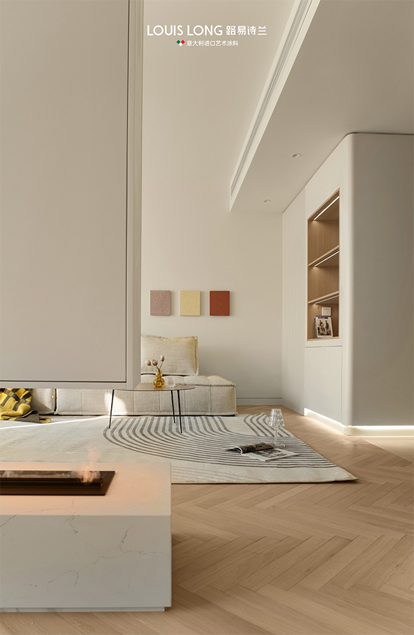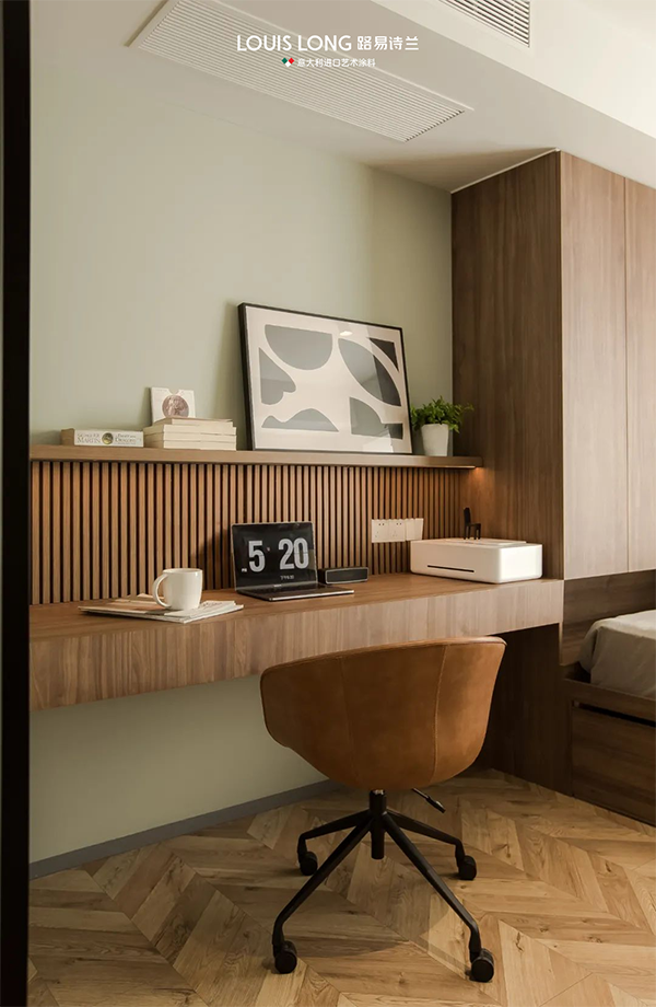 家具与艺术涂料,皆以简约之姿,融入这份自然的诗意里,原木色的温润、浅米色的柔和,与木色相互映衬,宛如一首无言的诗,静静诉说着家的温馨与安宁。