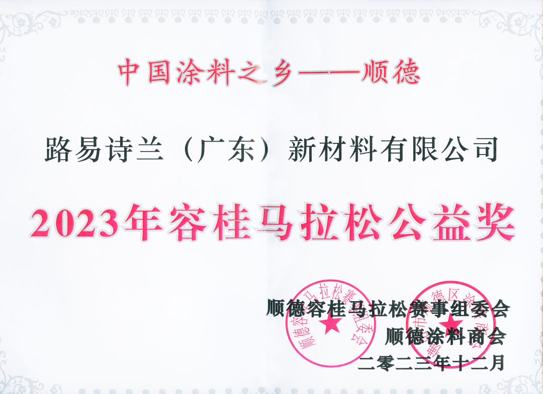 会议期间,顺德涂料商会为佛山马拉松公益活动活动提供赞助的企业颁发证书,同时感谢他们的支持与赞助,路易诗兰正是其中一员。