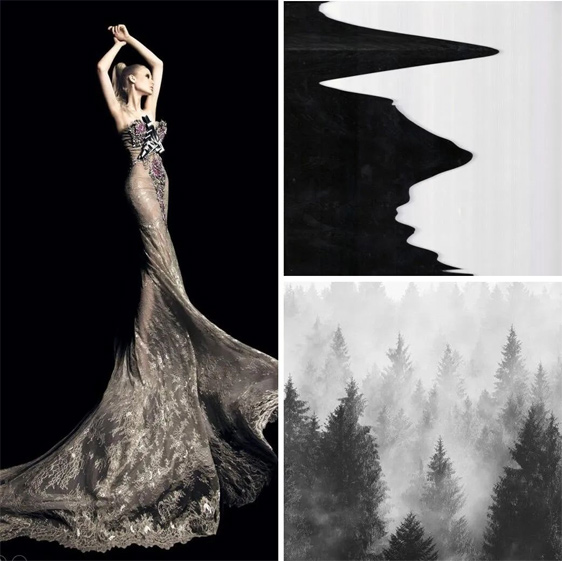 当黑白灰相遇,交错在一起之时,黑与白成了最直接大对比,灰则是最完美的过渡色,让黑白完美相融,丝毫不显突兀。