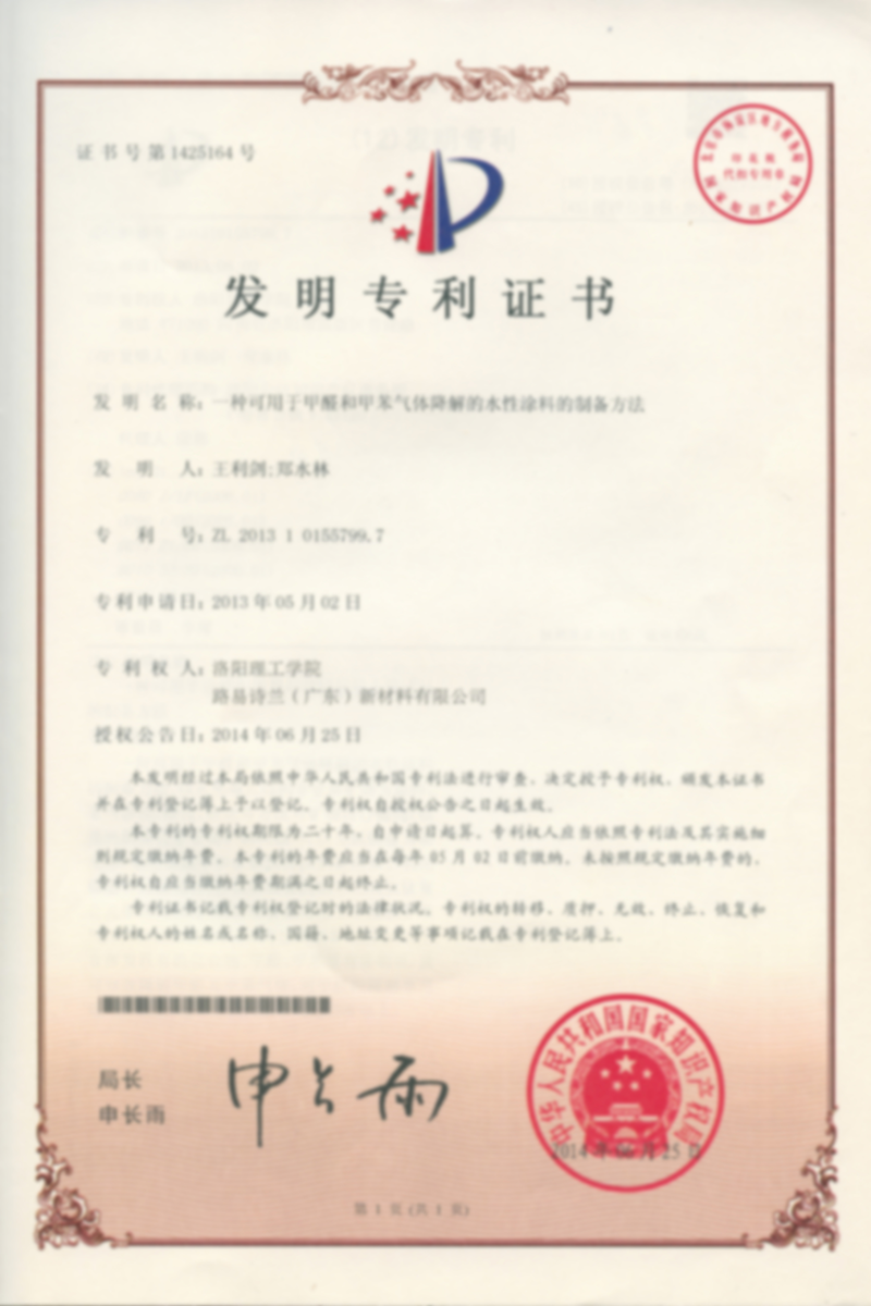 LOUISLONG净醛解苯技术通过国家专利认证证明真实有效