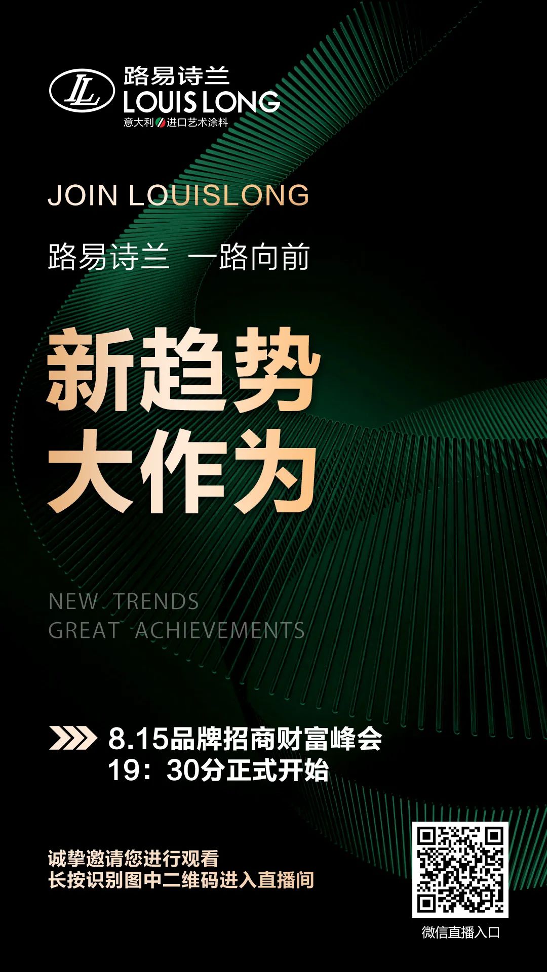 路易诗兰进口艺术涂料“新趋势,大作为”8·15品牌招商峰会直播将于8月15日晚19:30盛大开幕,直播间内专属招商政策,优惠力度,前所未有!锁定政策,与你同行!