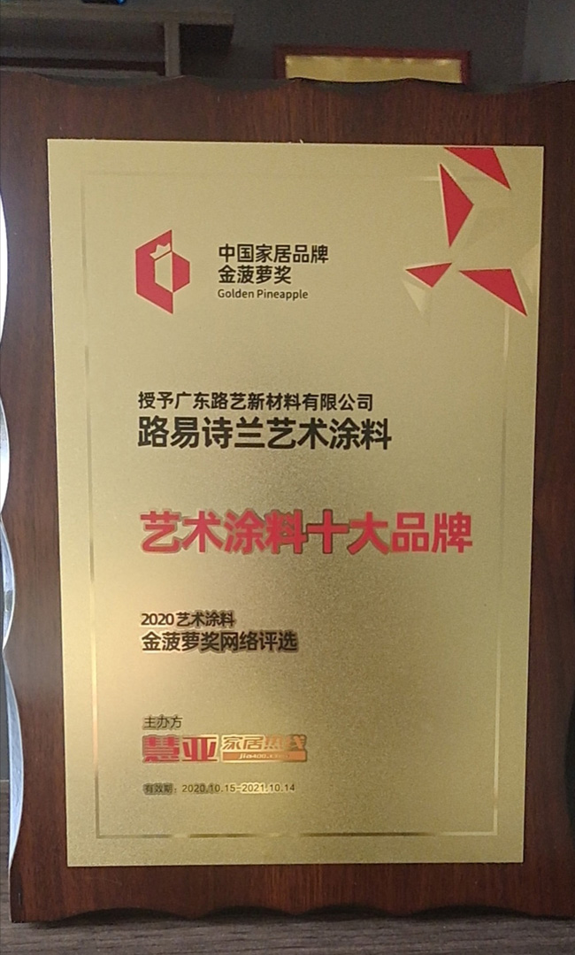 热烈祝贺路易诗兰荣获2020年中国家居品牌金菠萝奖:艺术涂料十大品牌