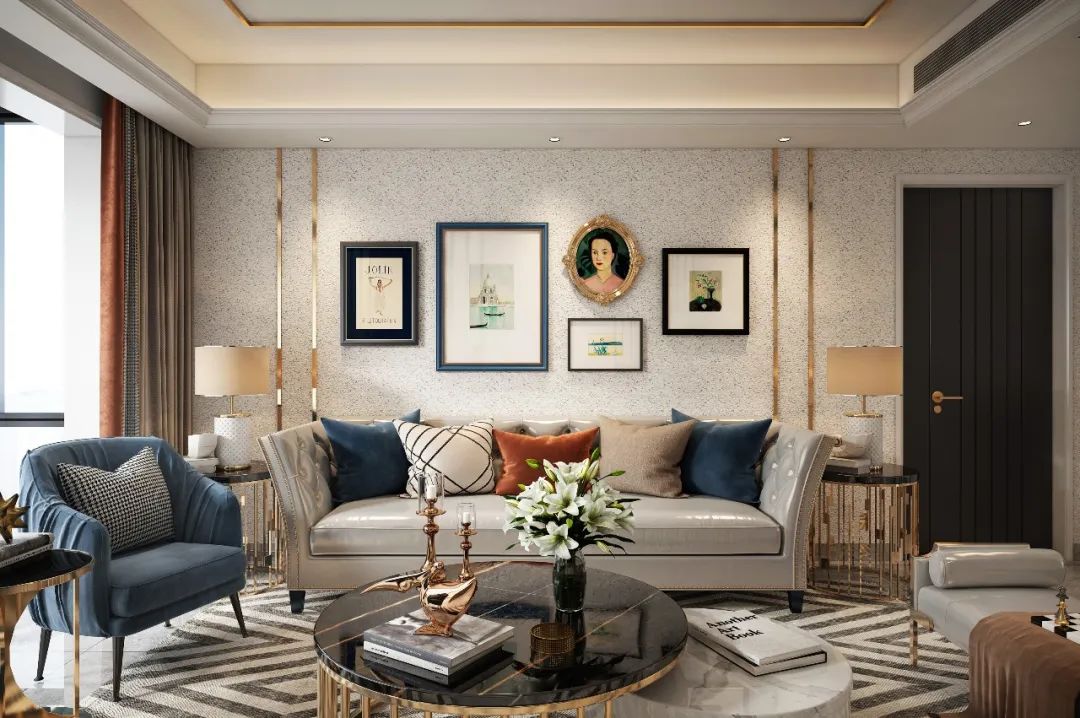 色彩缤纷多样,表面的小亮片犹如海滩上的贝壳片,星星点点,真实生动。整体营造时尚又不失典雅的家居环境。