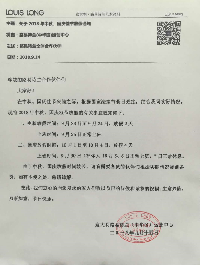 尊敬的路易诗兰合作伙伴们: