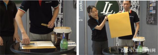 艺术涂料在人们眼中普遍认为是非常难施工操作的。而托瑞诺满天星这款产品重要一点就是易施工易成型,快速高效的涂刷出具有质感的艺术且高端的效果。这款涂料可以通过批涂、刷涂、滚涂施工,我们现场评测人员采用了三者中难度最高的批涂进行施工,路易诗兰的专业人员首先为我们评测团做了施工演示,在施工体验过程中我们的评测人员并没有闻到什么味道,随后经过专业人员的讲解后,我们评测人员亲自进行施工,评测一下它的易施工效果。