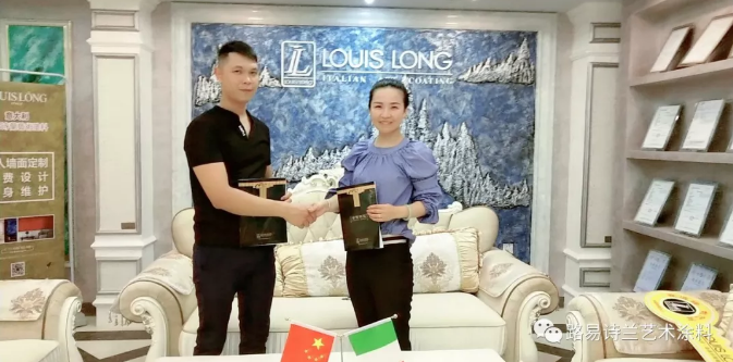恭喜叶总正式成为了LOUIS LONG的经销商,负责意大利进口.路易诗兰艺术涂料在广东茂名化州市的销售、推广,加速绿色环保艺术涂料在当地的落地。