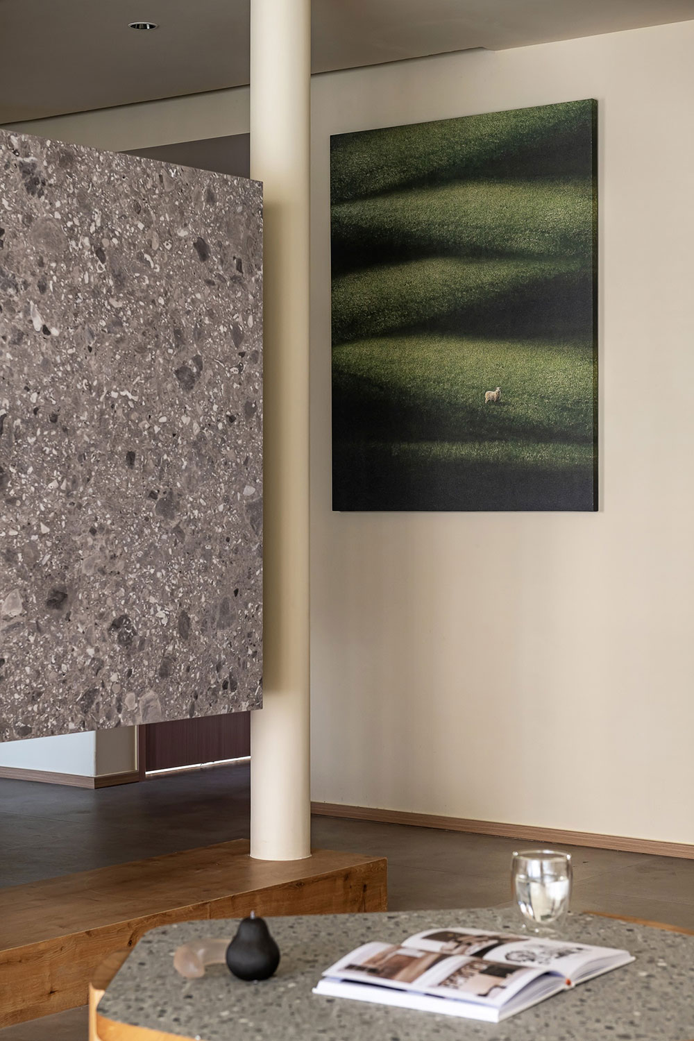 客厅墙面这幅由色彩、肌理、色块构成的画,以鲜明的个性注入对艺术生活的体验。