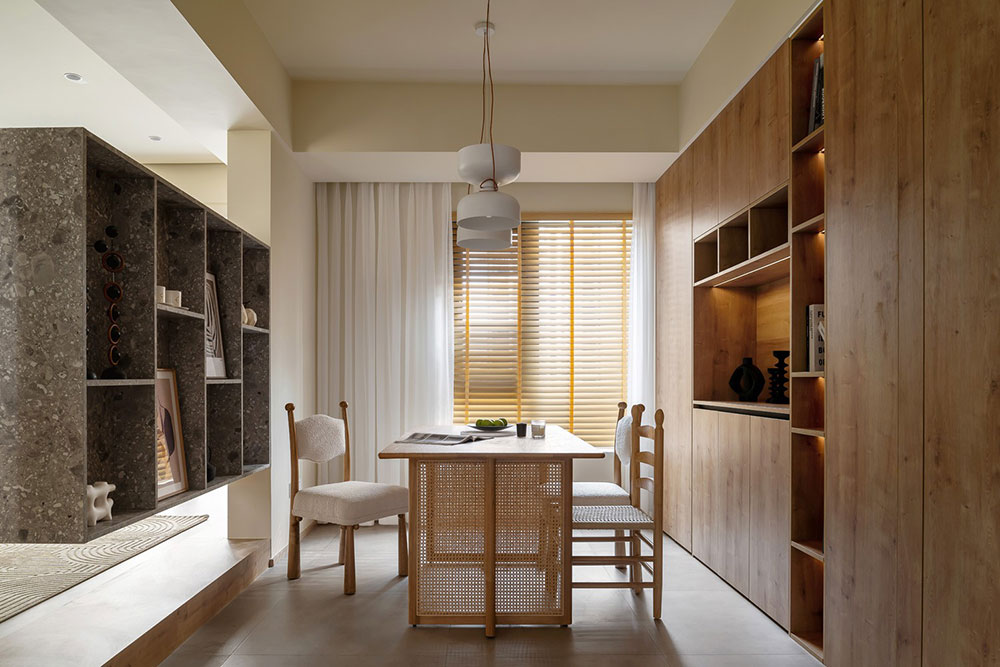 无论是软装还是硬装,整个家都包裹在温暖的木色中,仿佛在每个落日余晖里,都能找到这个家最为舒适的地方。