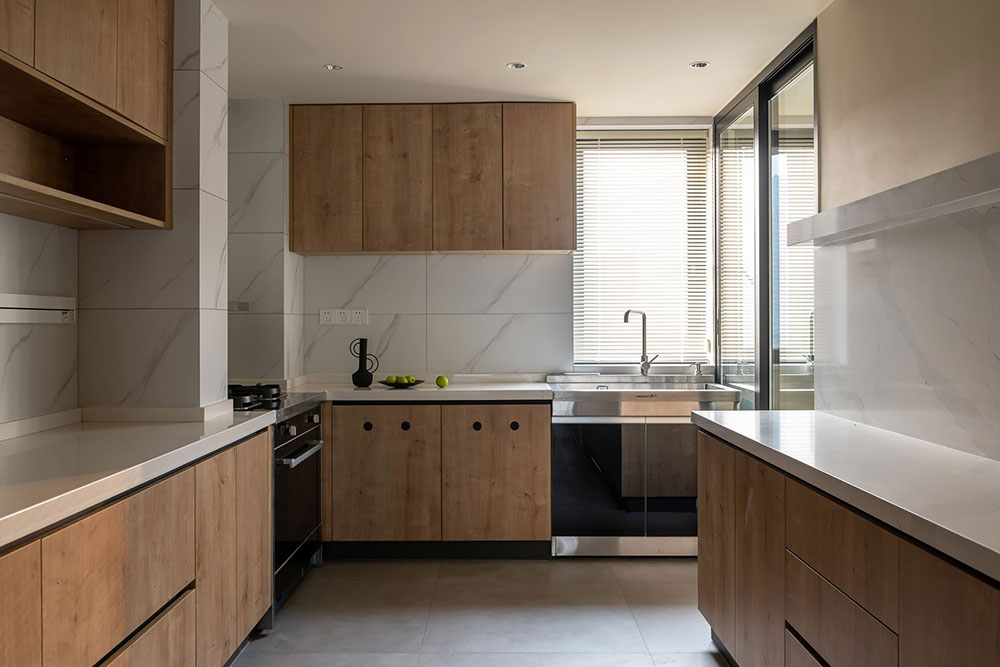 厨房的扩大,让两边都有操作台面,动线合理化,在这里享受厨房的烟火气息,也增加了互动性。