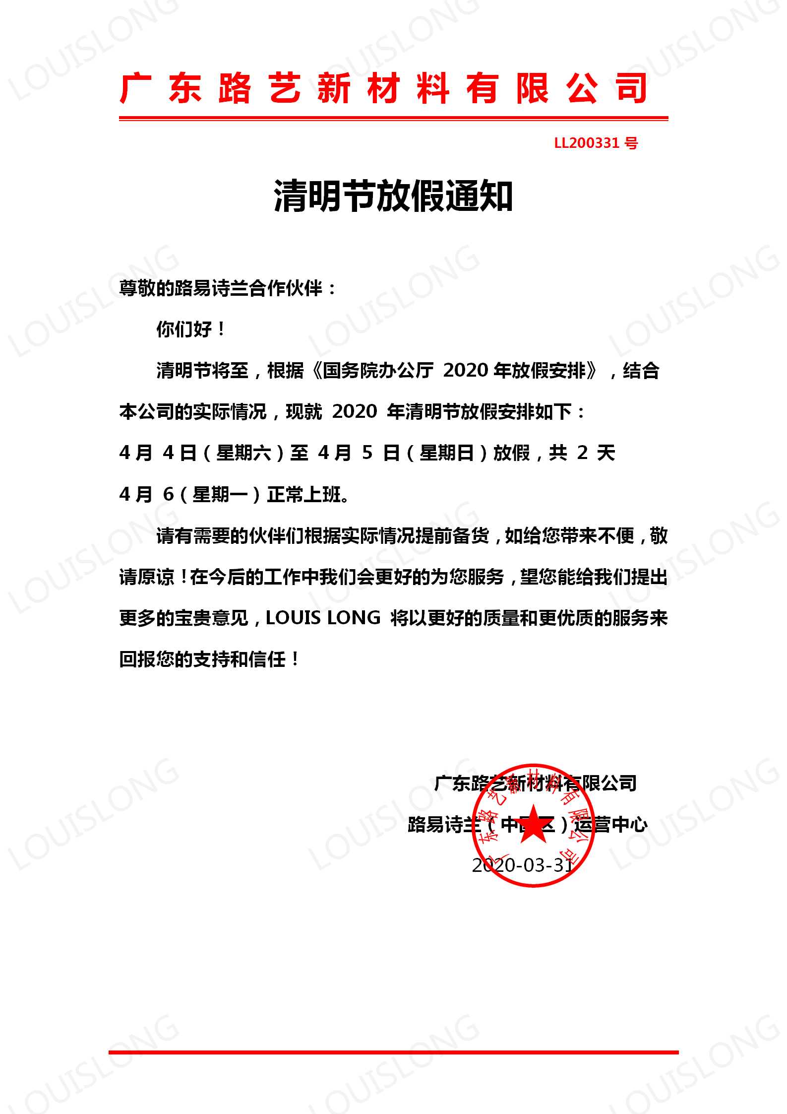 LOUIS LONG| 路易诗兰2020清明放假通知!