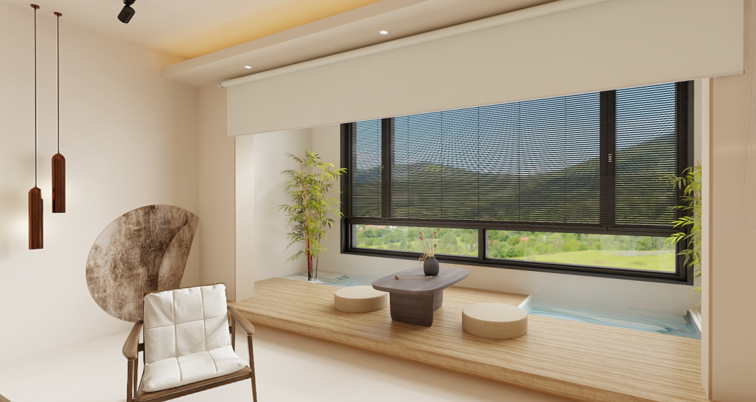 窗外释放出宁静的气息结合室内简约的背景环境,淡雅有格调。简约的设计与朴实无华的材质相融合,简约却不失舒适。