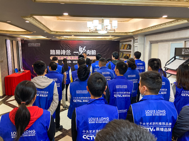 路易诗兰主动营销部部长杨林,有着八年建材行业经验,曾在知名硅藻泥品牌进行主动营销策略,有单店签单150万+的业绩经历。启动仪式上,