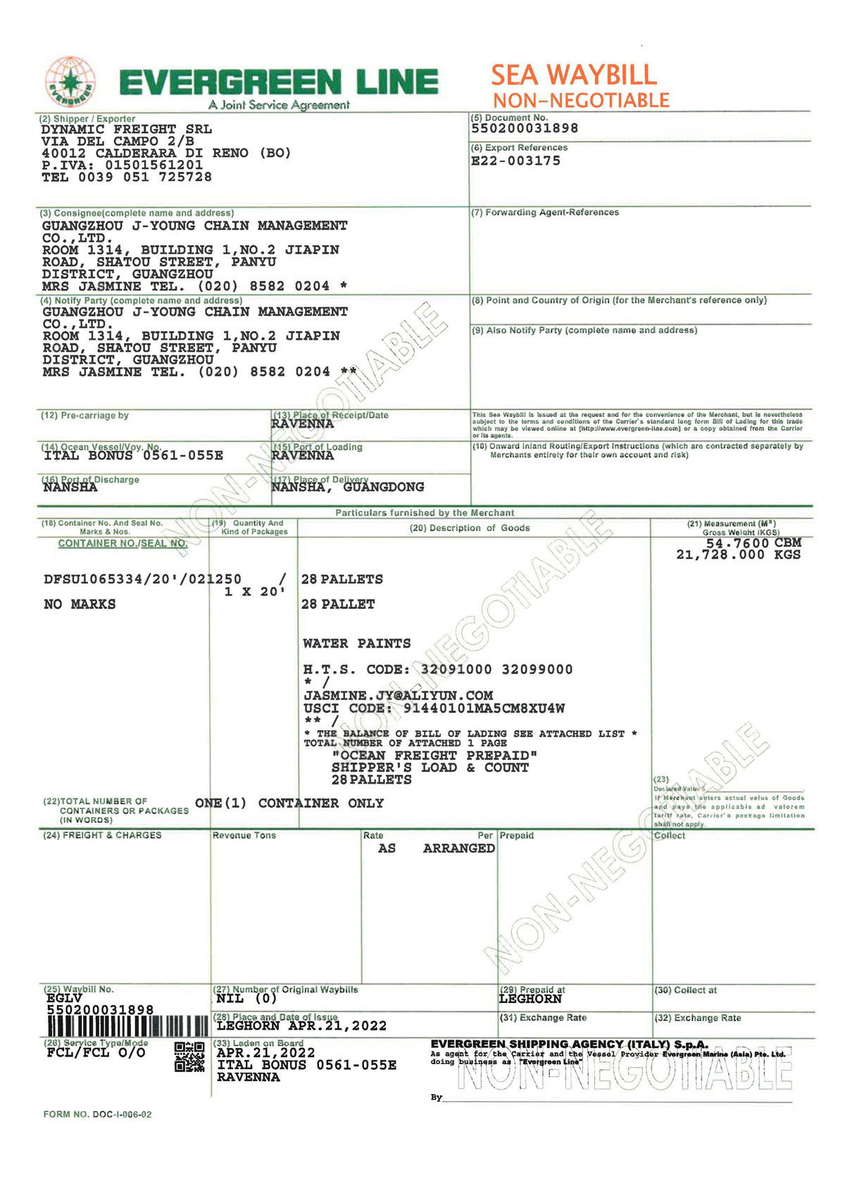 源产地证明master-and-house-BOL
