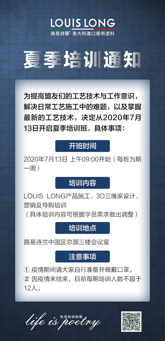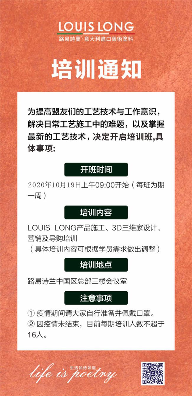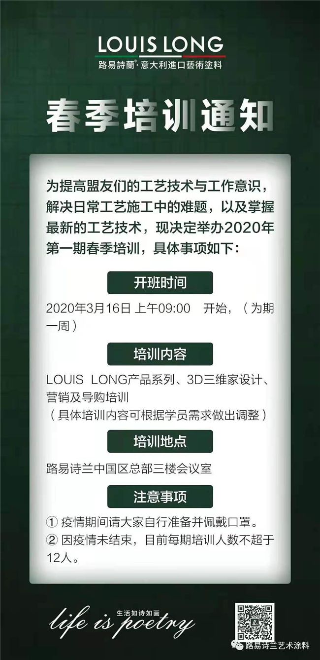 疫情之下,全国各地高度戒备。大家被宅在家中的这段期间,路易诗兰心系前线更想将美好的家装体验带给大家。LOUIS LONG进口艺术涂料导师直播间准备了精品直播课程,并邀请了专业导师进行现场答疑,高效赋能涂装技术人员。