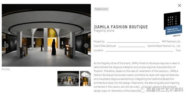 这一年,凭借优质产品与服务理念,路易诗兰迎来多次高光时刻。8月4日,备受设计界关注的ICONIC AWARDS 2020(德国标志性设计奖)正式揭晓获奖名单,浙江义乌陈一依托设计顾问在墙面上选用了LOUIS LONG进口艺术涂料的JIAMILAFASHION BOUTIQUE嘉米拉伊斯兰服饰旗舰店荣获德国标志性设计奖·创新建筑奖-室内类selection奖。