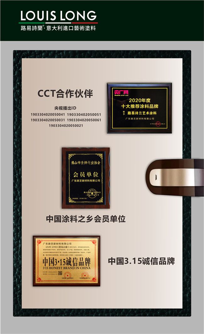 多次荣誉获得的背后,体现了LOUIS LONG路易诗兰进口艺术涂料新多元设计和健康环保产品获得了业界和市场的高度认可,亦彰显了路易诗兰创新实力与品牌价值。